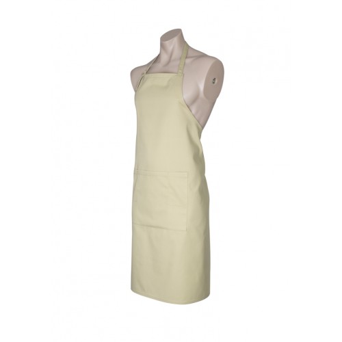 - Bib apron with adjustable halter self fabric strap around neck